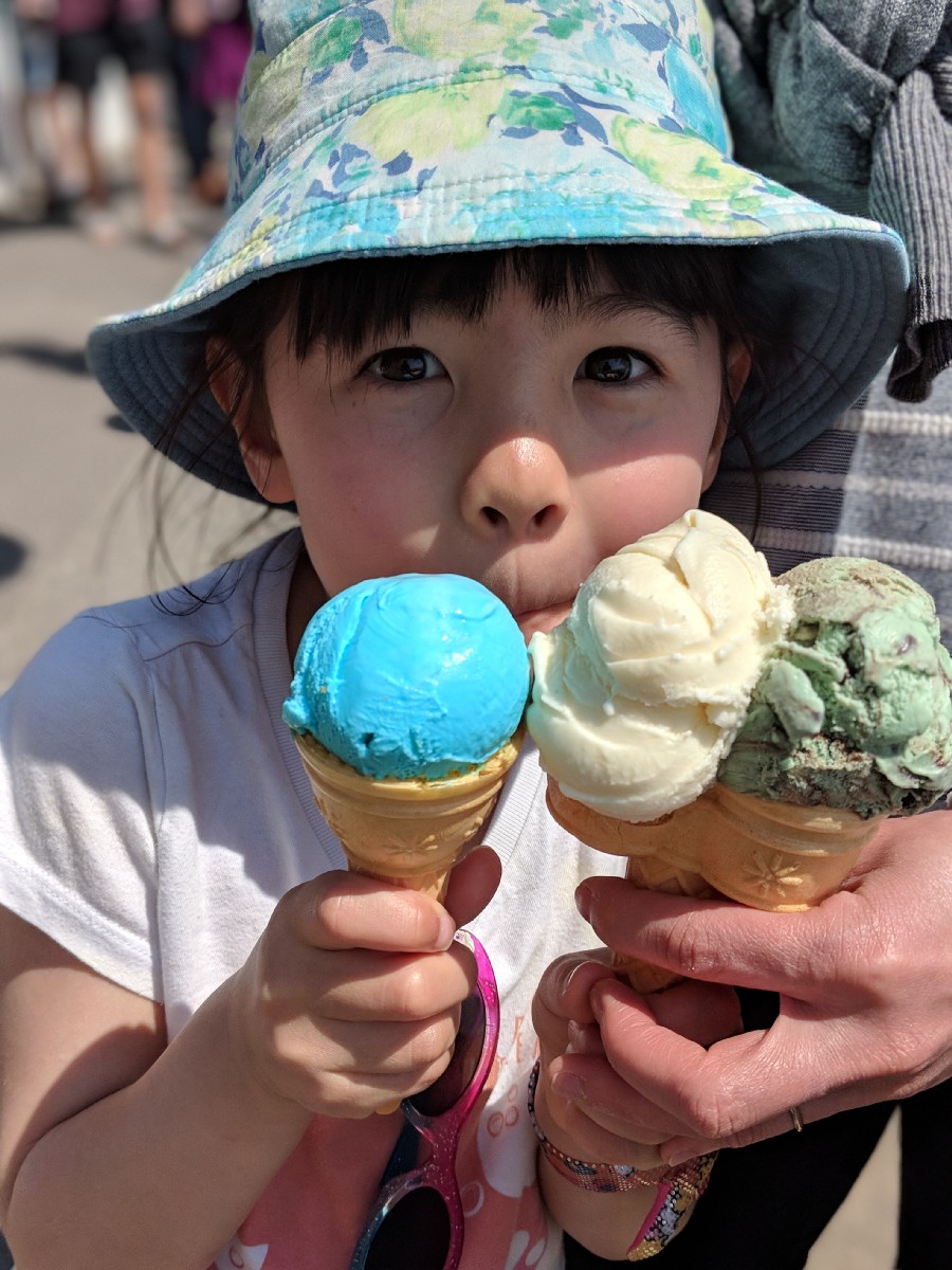 13:11:40 Erika and ice creams. The mint choc chip was good, but neither Chie nor I can quite understand the appeal of bubblegum flavour. | 13:12:54 The ice cream shop. | 13:33:42 On the steps. | 13:36:06 |