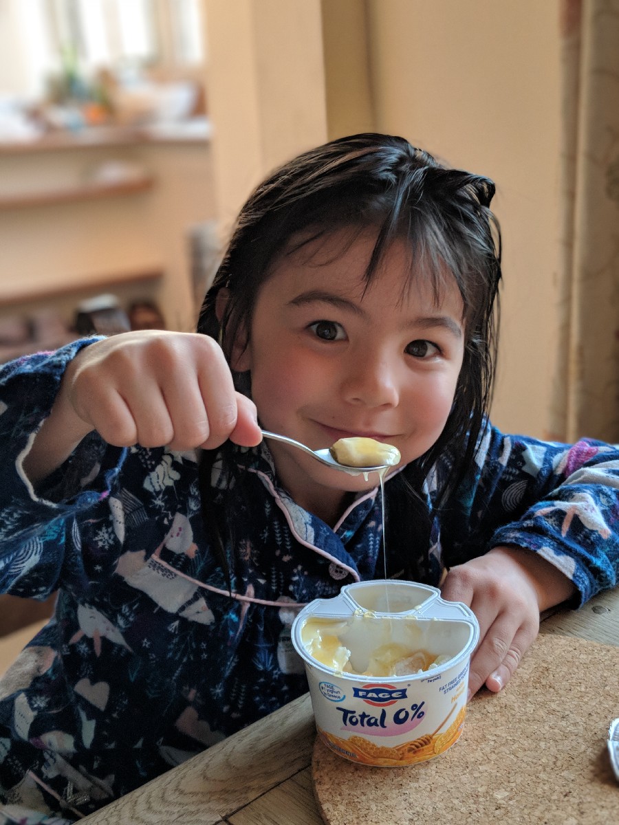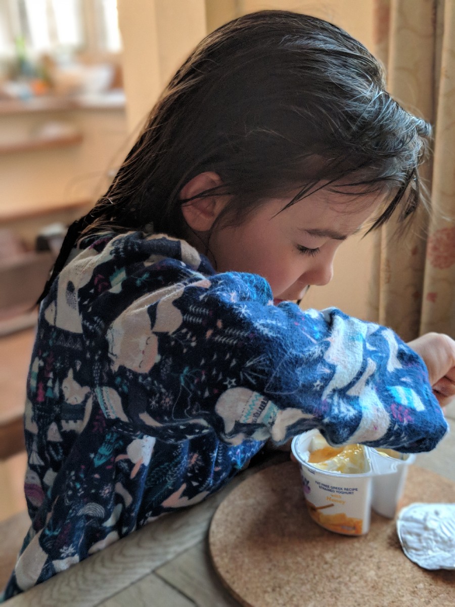 20:13:59 Erika having a pre bedtime yoghurt. | 20:14:38 | 20:17:38 A bit of a sunset again. | 20:27:54 Erika pretending to be a dog. |
