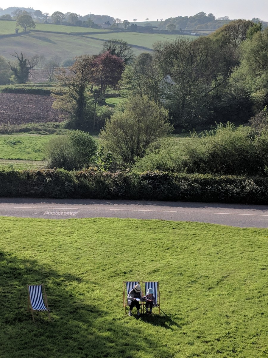 17:59:20 I like this shot of the girls, taken by me from the kitchen window. | 18:14:50 The butler (i.e. me) arrived with the tray of pre-dinner drinks and nibbles. | 18:16:32 Cheers again to the gatehouse. | 18:18:38 Chie getting arty. |