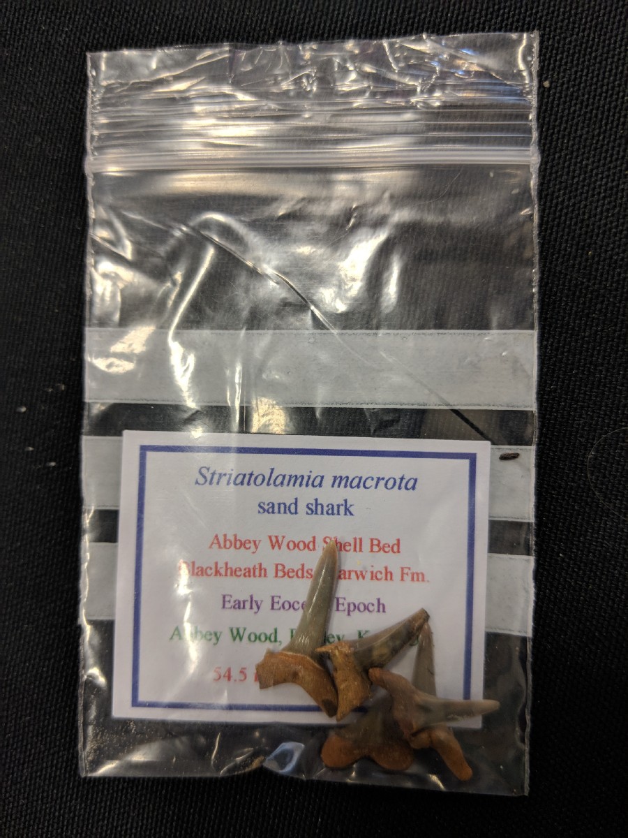 14:12:09 Look actual shark's teeth! | 14:16:13 Another stall at the Natural History Museum exhibition. | 14:16:27 The shark teeth Erika sifted out. | 15:35:56 Erika getting ready to go on the beach at Charmouth. |