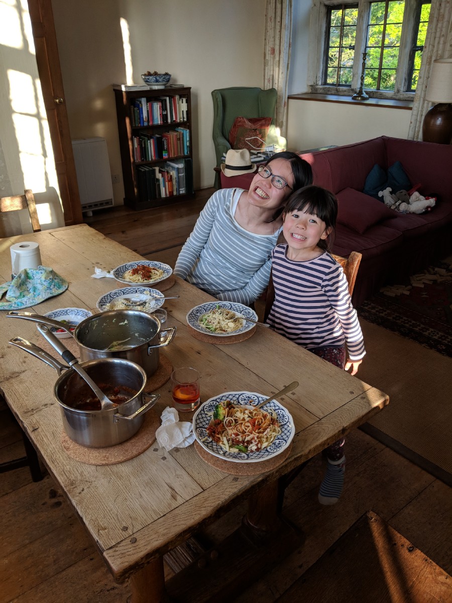 18:35:52 The gnats or midges or mayflys or whatever they were did get a bit annoying after a while though. | 18:52:37 Erika decided to come back inside while I was cooking dinner and Chie did some more drawing outside. She made some interesting structures with some wooden blocks we found in the cupboard. | 18:52:44 | 18:52:49 |