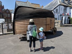 13:36:38 The seafront at Lyme Regis. | 14:04:54 The Natural History Museum had set up a temporary exhibition in Lyme Regis which we came to have a look at. | 14:06:26 Erika sifting for fossils. | 14:08:52 Erika picking out fossils. |