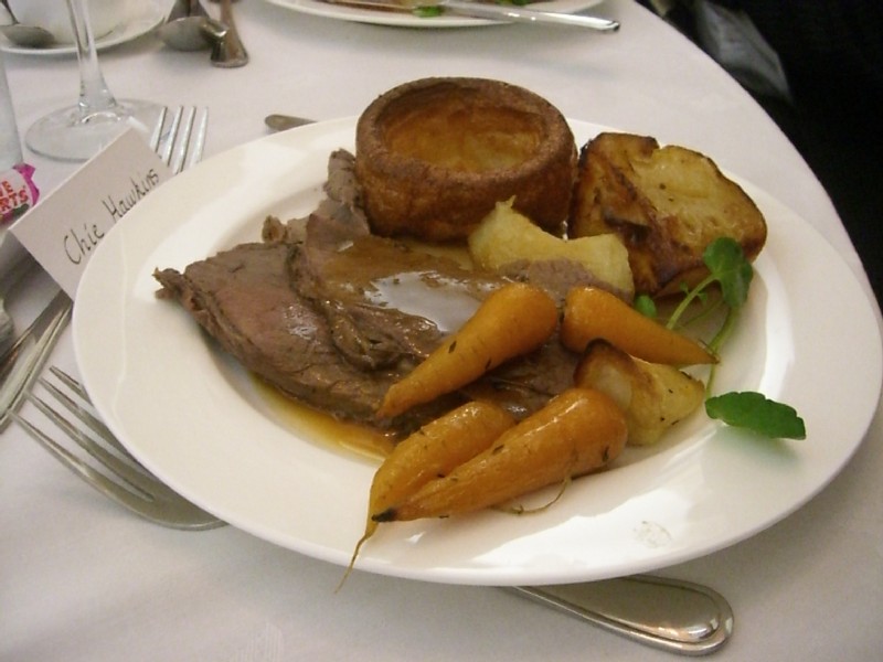 | 18:04:26 ...and the roast beef. | 18:06:16 The table Chie and I sat at for dinner. | 19:26:10 Chie went to take a few pictures of Simon and Vanessa cutting the cake... |