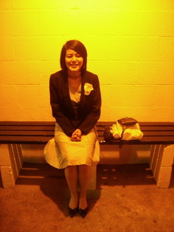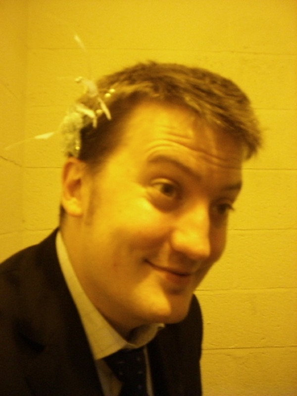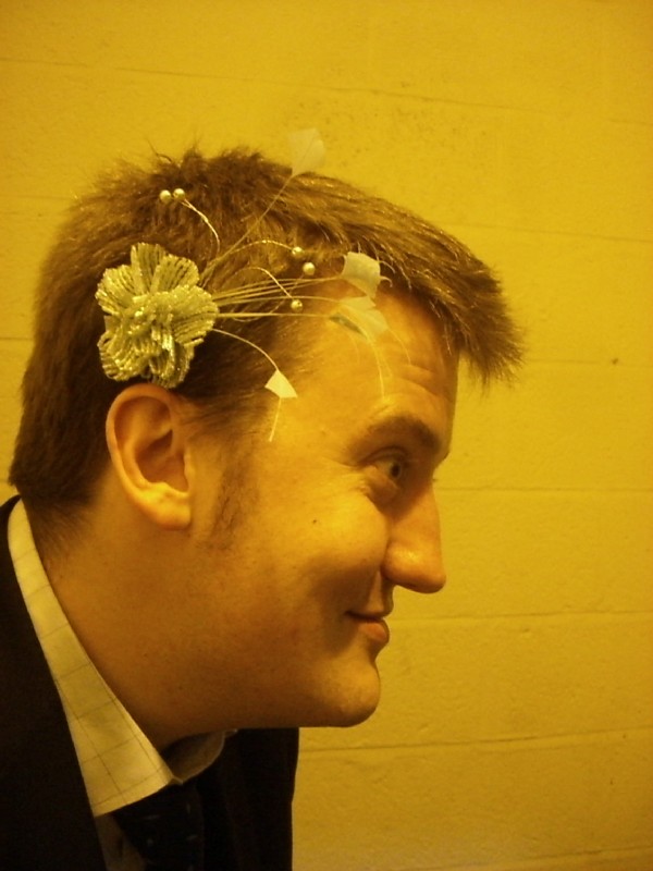 | 22:21:46 Midgham station by night. | 22:23:21 Some moronic pictures in weird lighting of me with Chie's fascinator on. | 22:23:27 One of the scariest pictures I've seen of me in recent years. |
