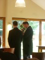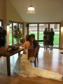 | 15:35:43 Well here comes the bride - doesn't she look fabulous! | 15:53:10 After the ceremony - we're now looking at (the backs of) Mr and Mrs Steele! I rather like the traily bit on Vanessa's dress, you don't see that so much nowadays. | 15:53:44 The newly married couple, posing for shots with the registry in front of them. |