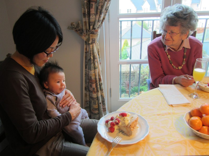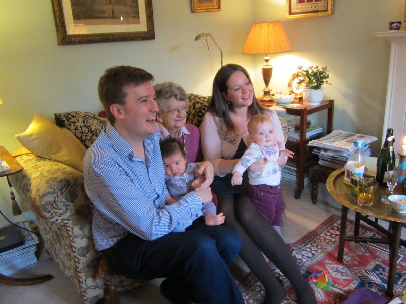 12:57:23 | 13:53:02 Me and Dave - the Dads and their babies. | 14:40:02 I mainly wanted to take a picture of Louise's excellent pavlova in this picture, but felt compelled to squeeze in some family too while I was at it. | 14:50:01 I was really keen to get a picture of Vera with two of her grandchildren, and two of her great grandchildren - thus so many attempts to get it right! |