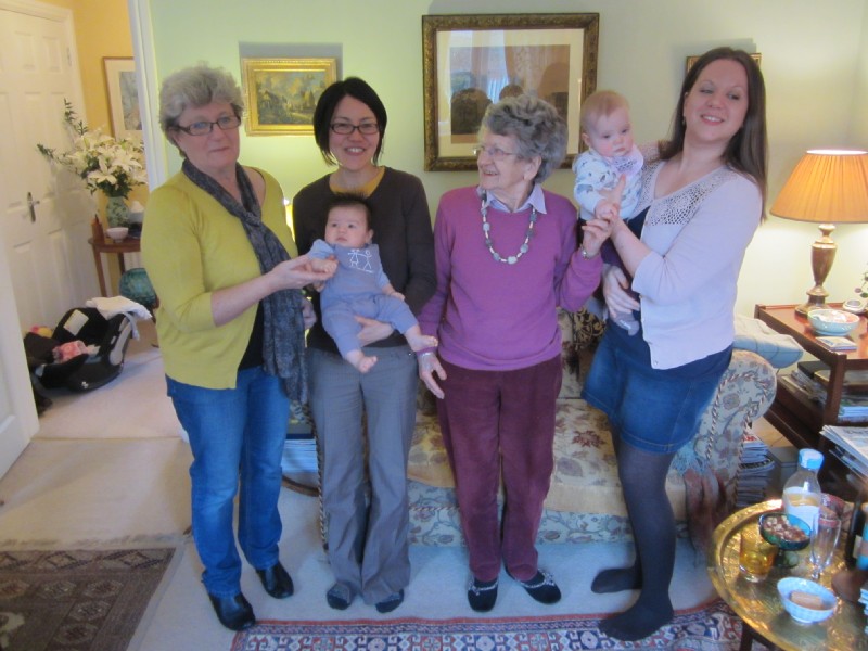 12:48:35 Erika with all the ladies - Vera, Louise, Chie and Bec. | 12:50:31 | 12:50:40 Louise and Bec with Erika and Jessica. | 12:57:15 Vera and baby Jessica - two Great Granddaughters in one weekend! |