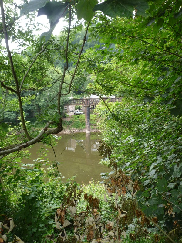 | 11:23:16 The stereo in our hire car - what do all these obscure acronyms actually mean? | 13:54:55 Arrived in Redbrook, where the car park is for the Boat Inn, over the river in Penallt. In fact the river is also the border between England and Wales here - can't be many pub with the car park in England, but the actual pub in Wales! | 13:55:56 I've always loved this old footbridge bolted on to the side of an older railway bridge. |
