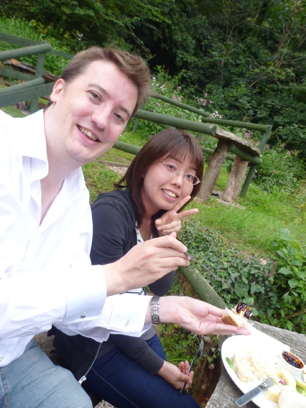 | 14:19:58 Chie's excellent Ploughman's Lunch... | 14:20:03 ....and my excellent Pan Hagarty. | 14:20:15 Me, Chie and Yuka at the Boat. |
