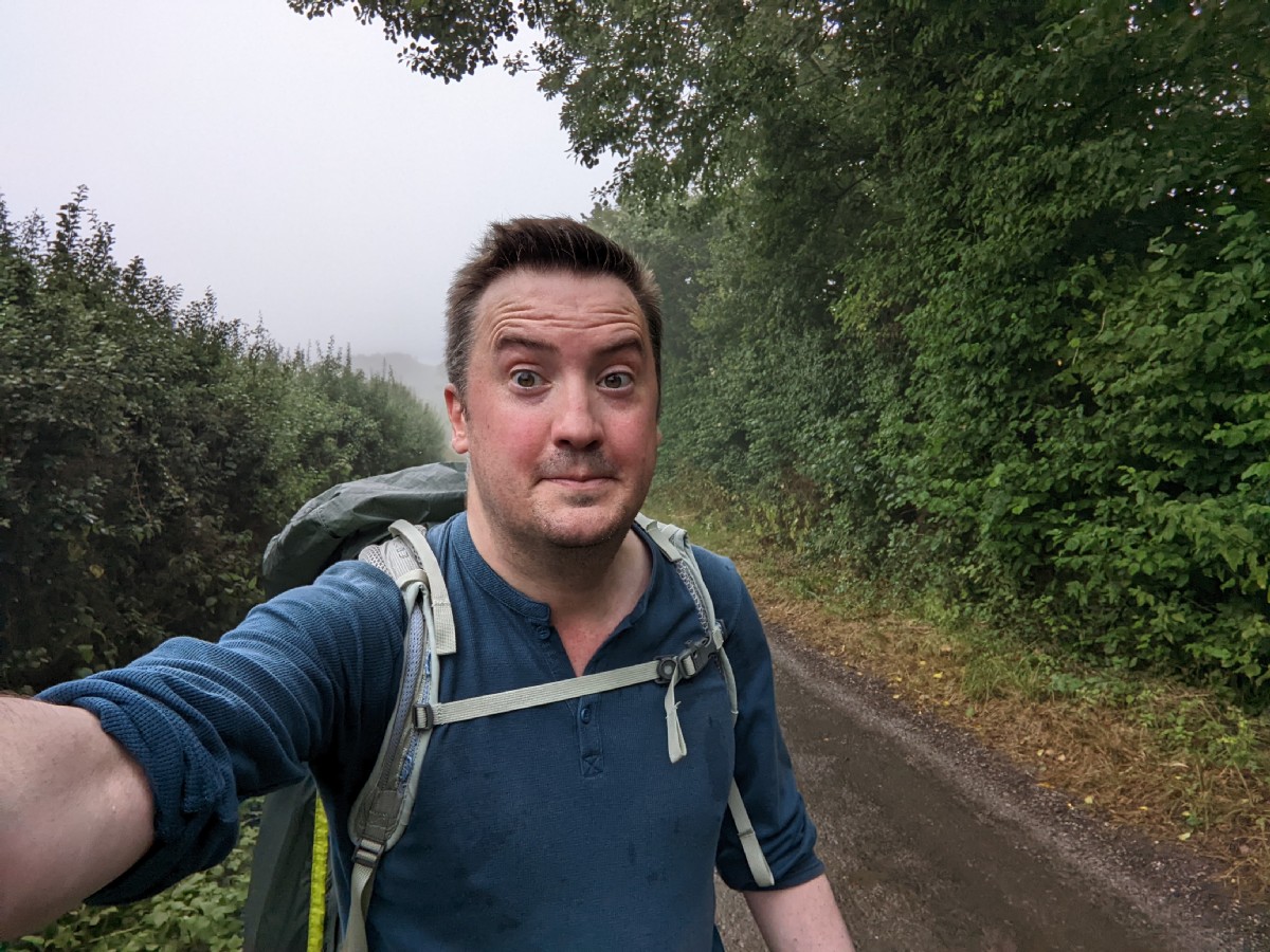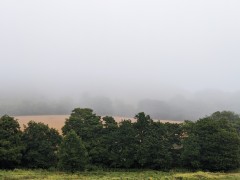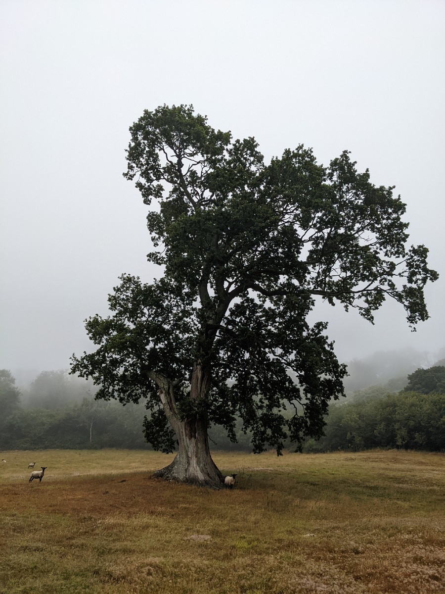 08:45:34 My lodgings for the previous night. I would have liked to have made an earlier start than this but didn't want to miss out on breakfast which wasn't served until 8 or so. | 08:55:03 This would have been the view of the Cerne Abbas Giant again, but alas today was rather misty and damp! | 09:14:20 An appealing oak tree I saw some way into my walk. | 09:29:19 Quite a damp start to the walk! Glad I brought a waterproof jacket along. |