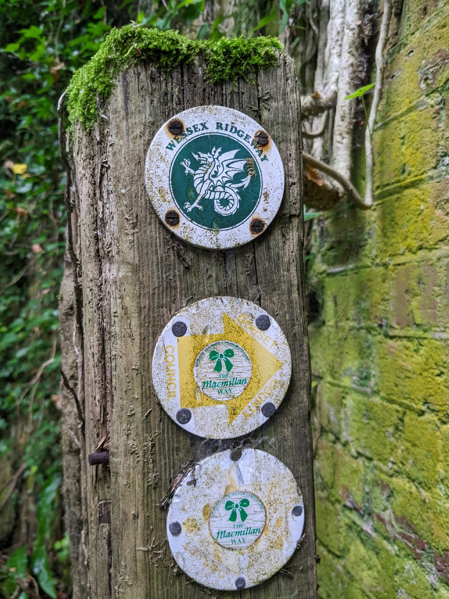 10:09:53 I did have to walk for a while at the start of the day before I connected back up with the Wessex Ridgeway, but I don't think this was the first Wessex Ridgeway sign I saw. | 10:19:08 The village green in the intriguingly named Sydling St. Nicholas. | 10:29:48 A track. | 10:35:29 Another track, rather nicely tree lined. |