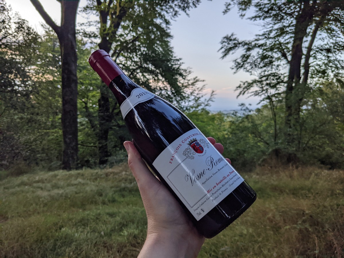 20:03:09 Nice evening light through the leaves of the trees. | 20:03:45 More glimpses of views between the trees here and there. | 20:03:47 | 20:27:41 I had rather stupidly lugged this bottle of Vosne Romanee for almost 20 miles today! |