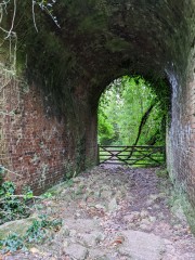 11:16:50 Now passing through Maiden Newton. | 11:18:15 A couple of cottages in Maiden Newton I thought photo worthy. | 11:59:50 Heading out of Maiden Newton now, passing under this old railway bridge. | 11:59:56 A different (older?) style of Wessex Ridgeway sign. |