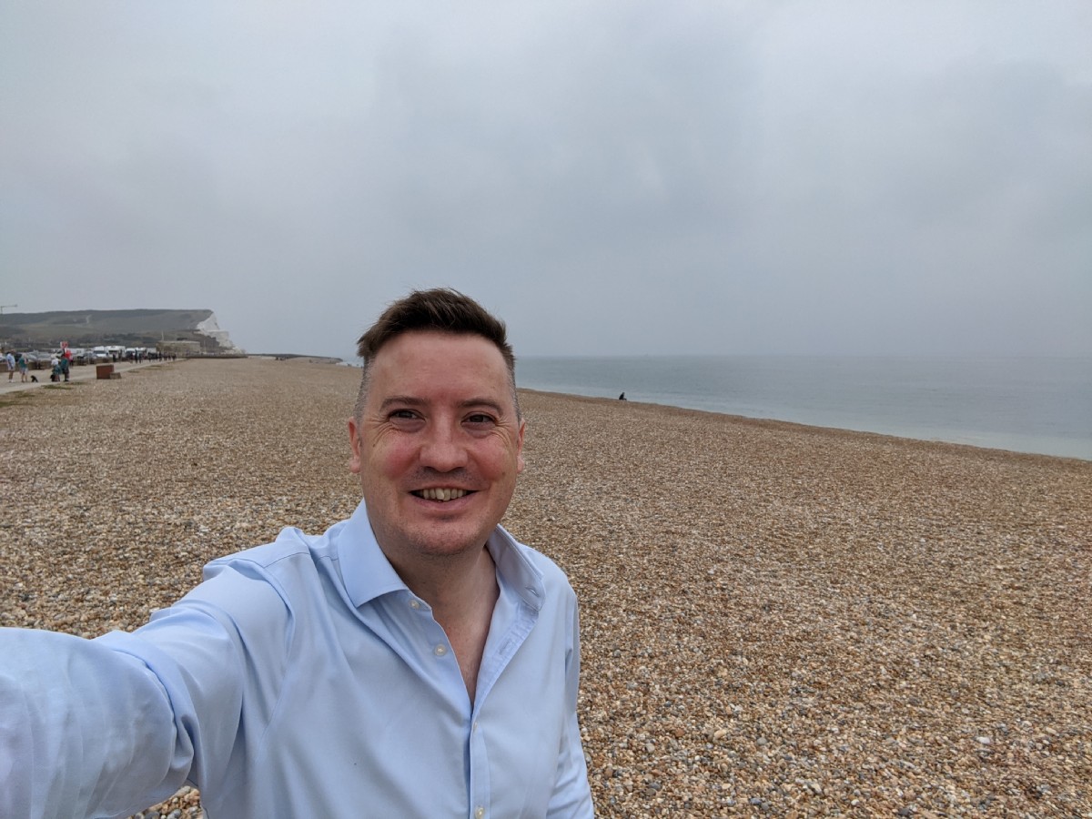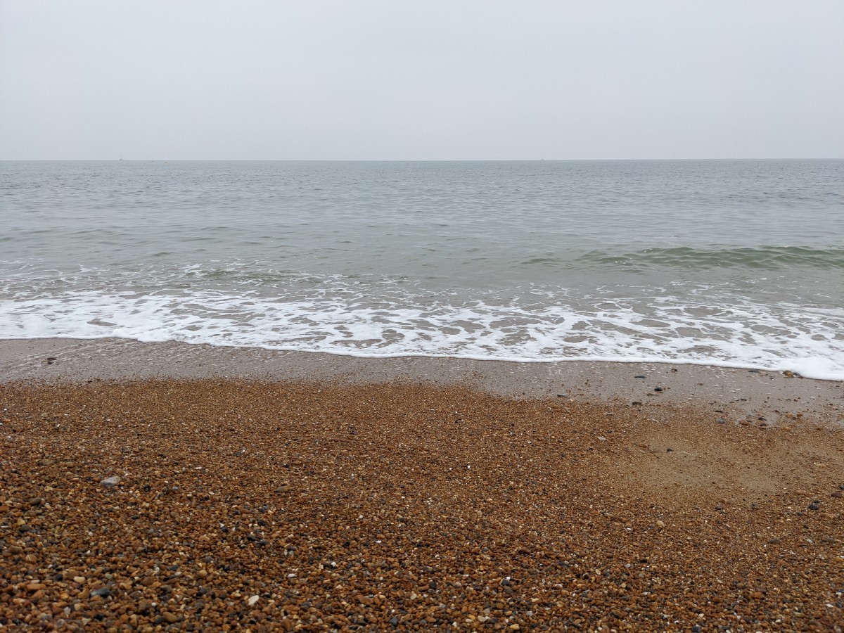 10:43:28 A nice stone I picked up to take home. | 10:43:33 | 10:45:20 The sea. This may look like a rather unappealing collection of greys and browns but I was very happy to be here. | 11:17:37 Next on my itinerary I drove to a car park at the edge of Seaford, and walked from there a little way along to get a view of the Seven Sisters. |