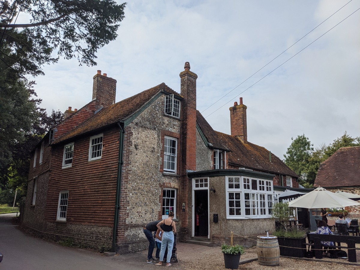 12:25:25 Me in my tweed cap (hiding my terrible hair cut) amongst the vines. | 12:27:09 Indeed they were Pinot Meunier. | 12:27:31 | 13:23:04 Next stop, the Plough and Harrow at Litlington for lunch. There's actually a brewery in the village, and I was pleased to see the pub serving their beer (although I probably committed sacrilege by having a shandy as I was driving). |