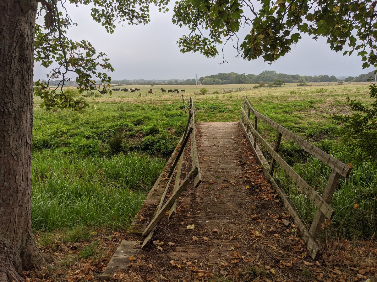17:56:05 Birds on a wire. | 17:56:26 The tower seen across the fields. | 17:56:32 | 17:57:45 A little footbridge. |