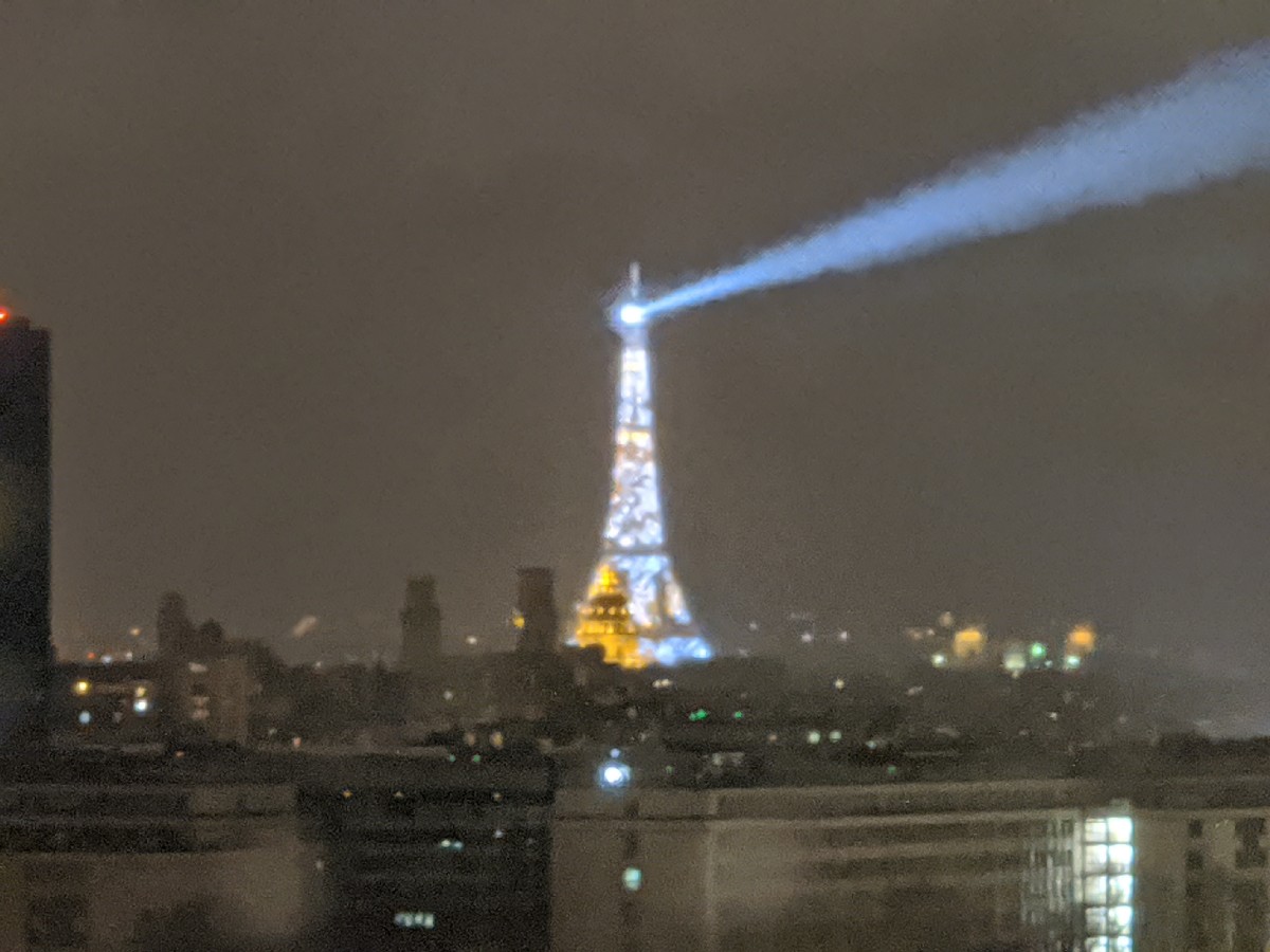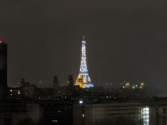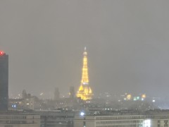 21:52:27 Some Pol Roger seemed appropriate as we were in France - although only ended up having one glass, and saved the rest for the train the next day. | 21:52:57 | 22:00:30 It was getting harder to take pictures of the Eiffel tower given the weather. | 22:01:11 |