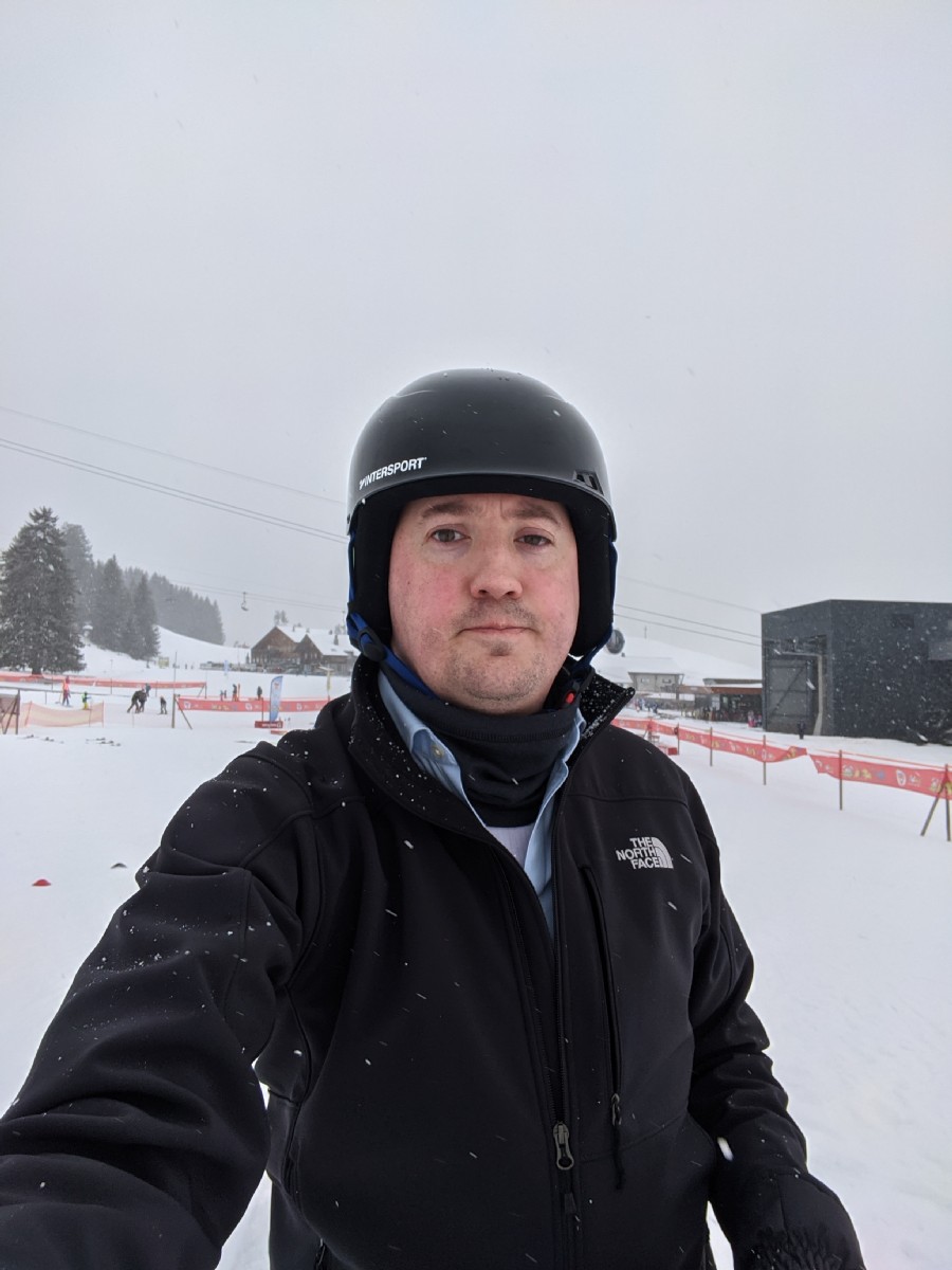12:20:40 That's our ski instructor, helping Chie to get her skis on. | 12:20:42 Erika and our ski instructor. | 12:41:11 The only photo I have of me in my skiing attire. Given how unsuccessful the lesson was for me this is possibly the only photo ever of me in skiing attire. | 12:42:08 Erika on the other hand looked much more comfortable. |