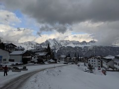 16:10:26 In on the other hand decided to head back to the hotel. I managed to slip on the ice while taking either this picture or the next one, and ended up in a surprising amount of pain - I think I bruised a rib or something. | 16:11:02 Heading back through Tannenboden. | 16:19:34 Near our hotel I think. | 16:47:18 Back at the hotel room, I attempted to use snow to chill a bottle of ESW. |