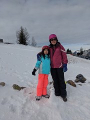 14:40:51 Erika making a snow angel. | 14:46:25 Erika probably having cold hands. | 14:53:31 In the slightly older cable car from Prodalp down to Tannenheim. | 14:53:35 |