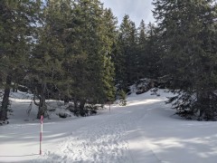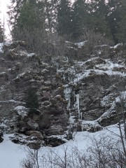13:41:49 On our walk from Chruz to Prodalp now. | 13:41:58 The trail went into the woods for a bit at the start. | 13:42:49 | 13:43:28 Icicles. |