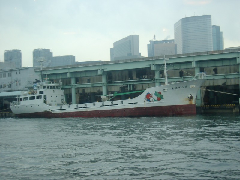 Next item on the unplanned intinerary was a boat trip, from Asakusa down to Hinode. So here's Chie on the boat. Again she seems to be hiding from the camera a bit!