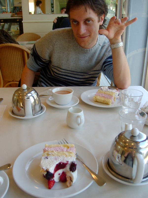 Me, having enjoying a nice cup of tea, and some pear tart.