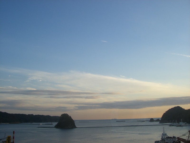 A view of our balcony, the roten buro (outdoor bath) and beyond to the bay.