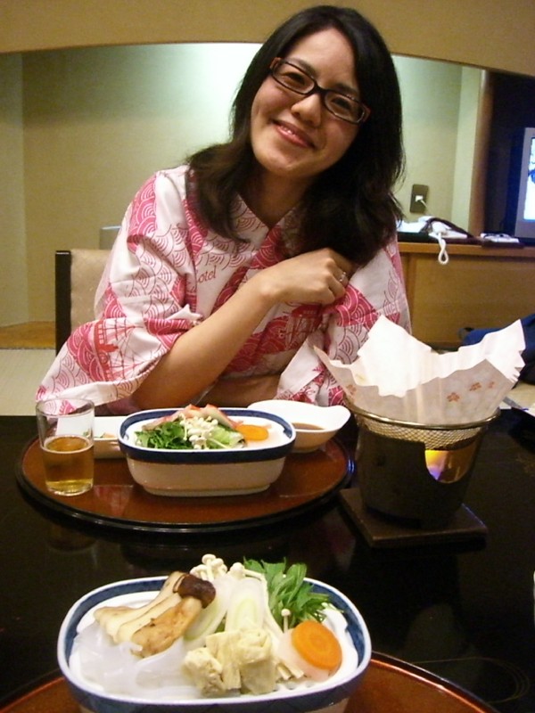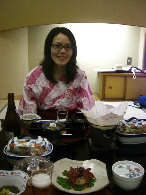 Dinner, ryokan style, was a real feast and to my surprise they managed an entirely vegetarian menu for me. Excellent!