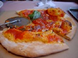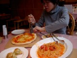 Saturday 14:36 Close up on one of our pizzas... and the best thing was the total bill came to less than 2000 Yen (under ten quid!).