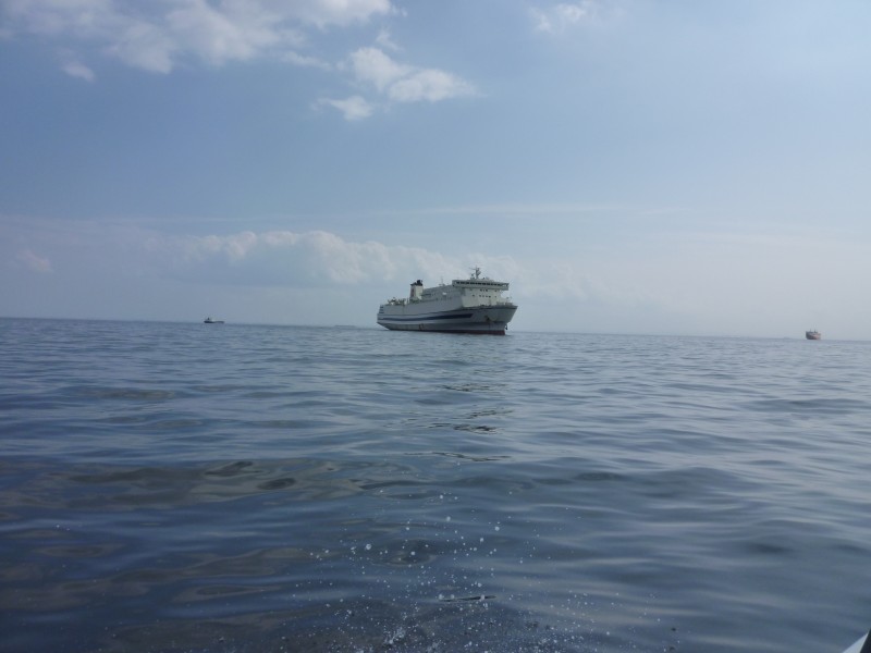 | 12:35:07 | 12:40:45 Quite a large cruise liner or something there. | 12:40:55 ...and the same thing a bit closer up. Maybe not a cruise liner - looks more like a cargo ship now. |