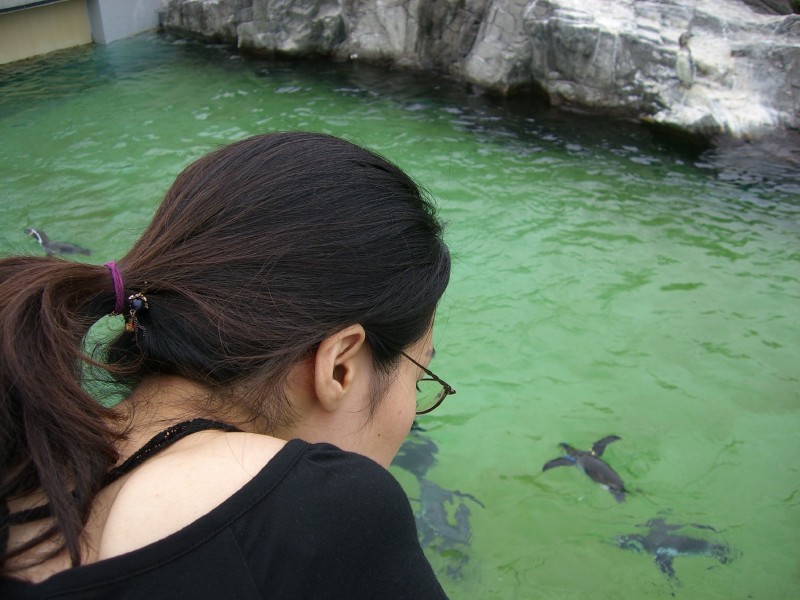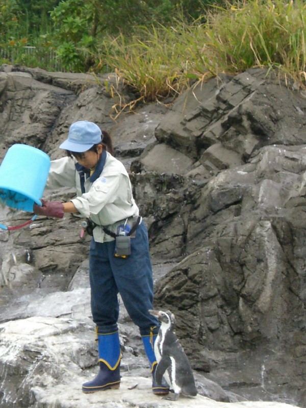 There's a union representative here supervising the lady whose job it is to feed the other penguins.