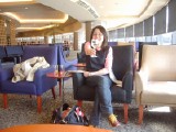 Chie relaxing in a comfy chair in the Northwest business class lounge in Tokyo Narita airport, just prior to us boarding the plane that would take us to the UK.