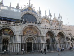 08:17:51 On the way to St. Mark's from the Rialto bridge after getting a vaporetto from our hotel. | 08:18:07 Lots of numbers. | 08:22:09 First glimpse of (the side of) St. Mark's Basilica. Partly covered by scaffolding but still glorious. | 08:23:21 The front of St. Mark's. |