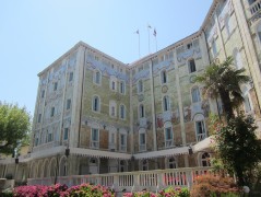 10:40:23 A quick espresso in Lavena on St. Mark's square. Amazingly only 1 euro! | 10:46:33 The two columns with statues atop. | 11:31:07 Now on the lido, after a Vaporetto ride from St. Mark's. This Art Nouveau hotel was rather eye catching. | 11:31:16 |
