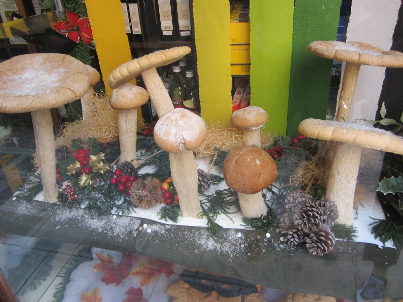 13:45:00 | 14:24:21 Lunch in a slightly touristy cafe. | 14:24:29 I regret ordering this - yes it is a pizza with chips on top. It was on the menu and had an Italian name, I somehow imagined it might be a bit more sophisticated than this! | 14:46:35 Mushrooms made of bread. |