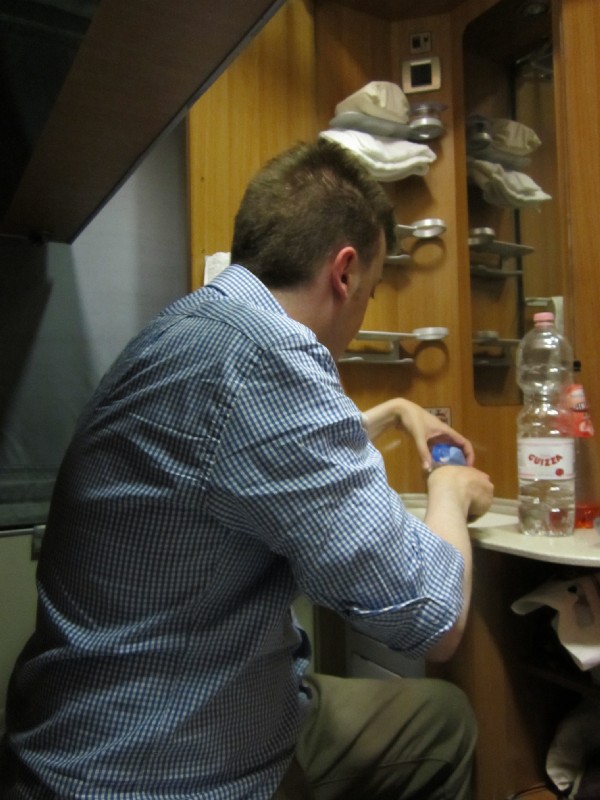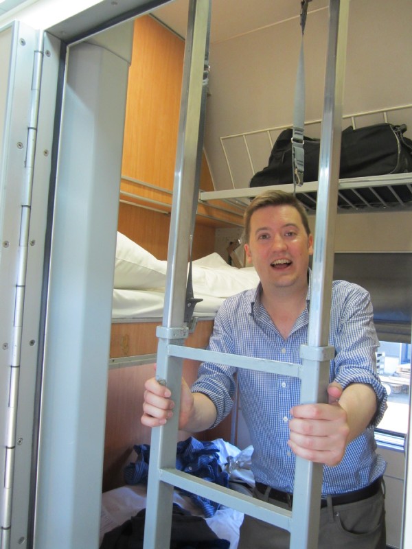 19:27:22 Chie and the Thello. | 19:38:01 Chie in our cabin on the Venice to Paris sleeper train. | 19:38:08 The corridor. | 19:40:52 Me and the ladder. |