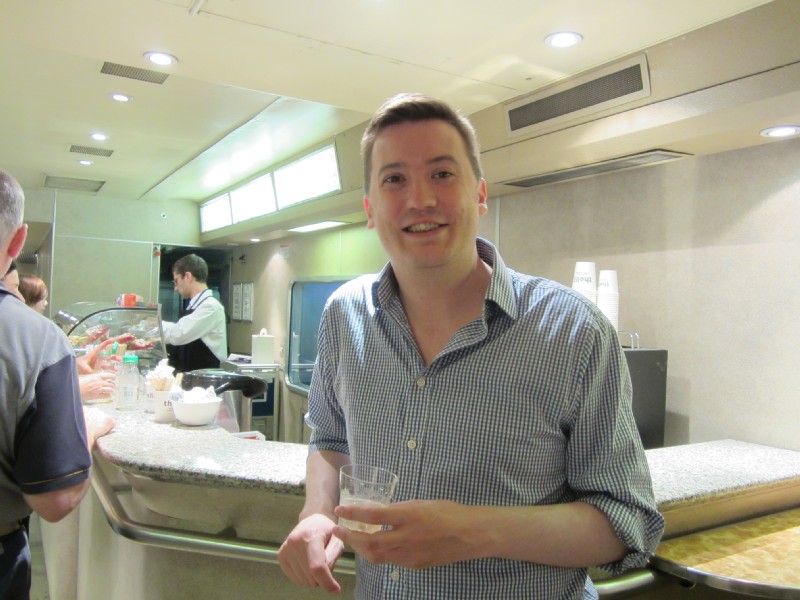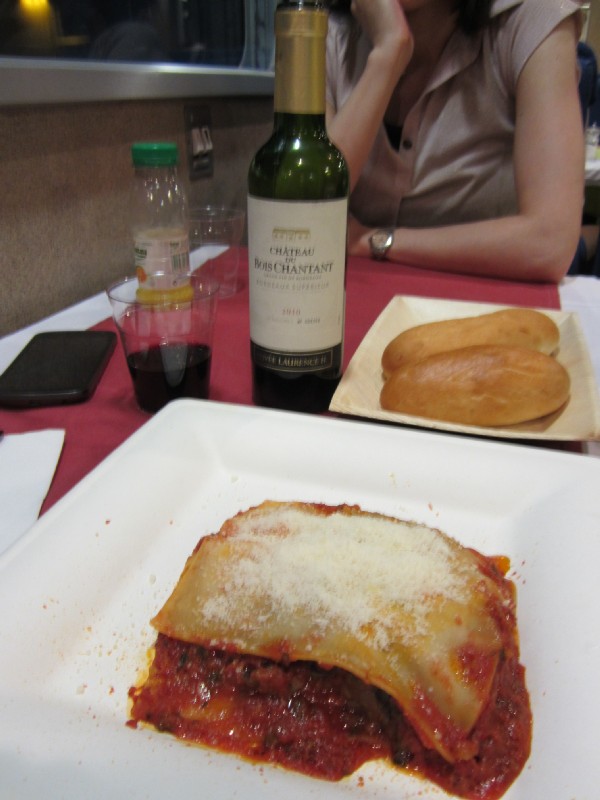 21:29:43 In the bar on the sleeper train, enjoying a complimentary glass of "Champagne". | 21:43:23 In the dining car of the sleeper train where we had dinner 2. | 21:44:37 | 21:47:03 A sort of vegetable lasagne. |