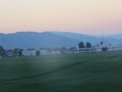 20:10:16 | 20:10:27 | 20:11:22 We raced this train for some way across the bridge. | 21:11:09 Views of the Italian countryside from the sleeper train. |