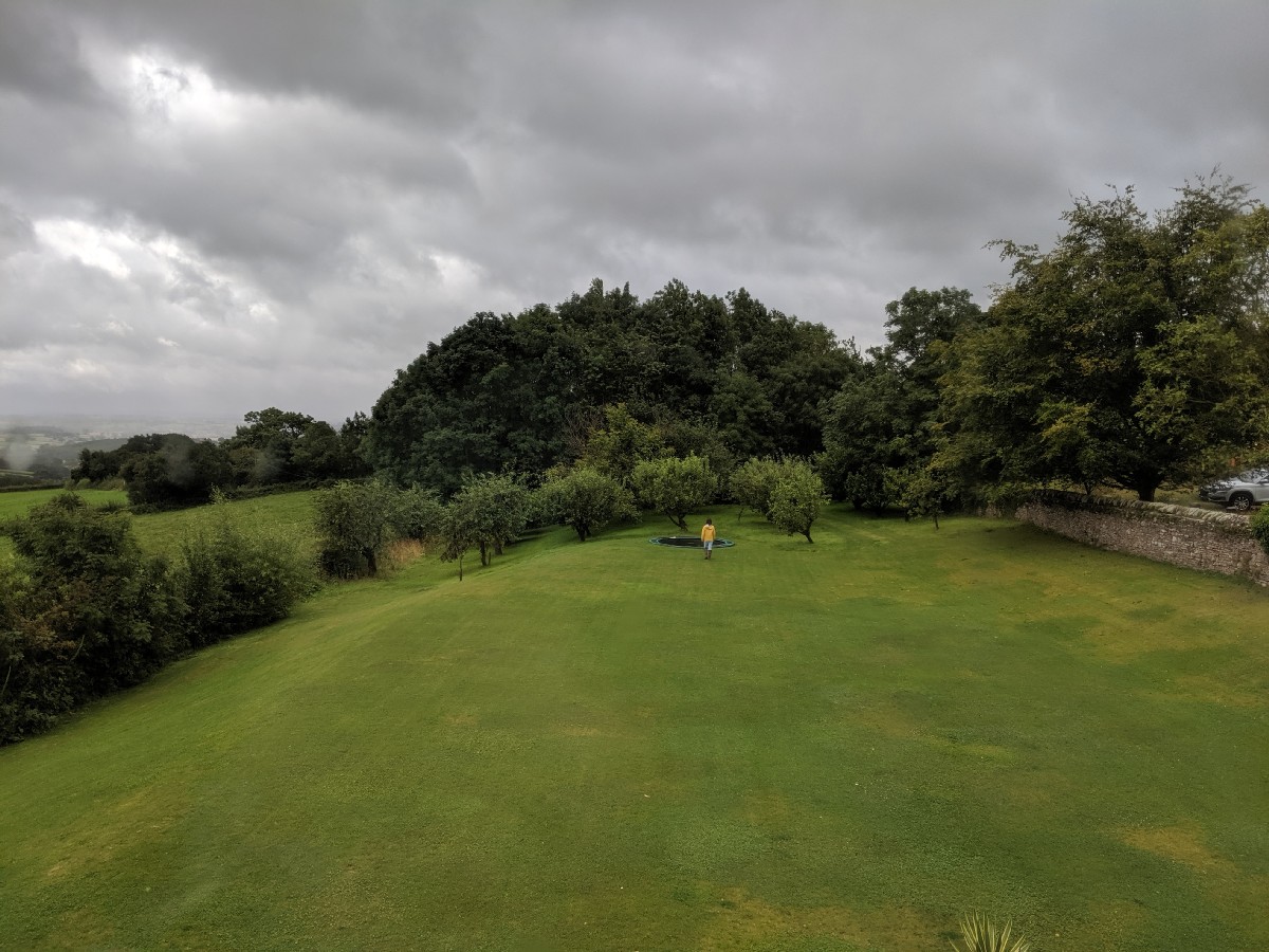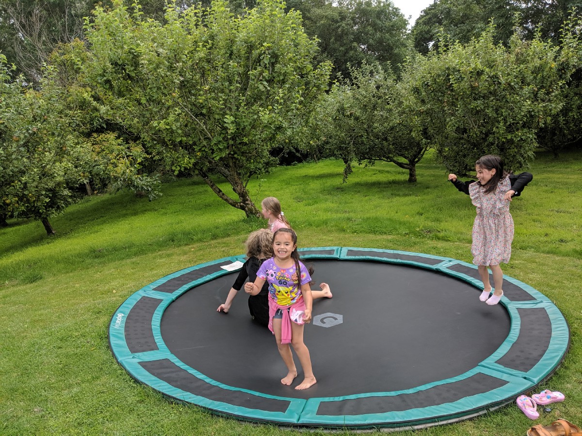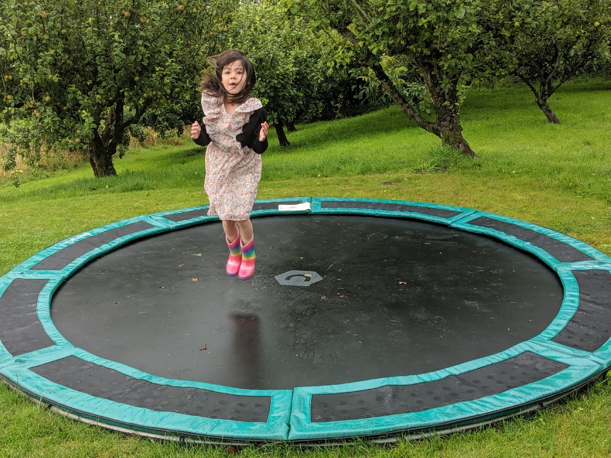 10:51:08 | 10:53:50 Erika and Laura Jane on the trampoline in their wellies. | 10:54:42 Erika's other third cousin Mar looking at the orchard. | 10:55:29 Still looking pretty grey outside! |