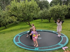 14:53:11 Adrian, Tim and Dad. | 14:55:50 The girls - all second and third cousins - taking a breather from the party to bounce on the trampoline. | 14:55:55 | 14:55:57 |