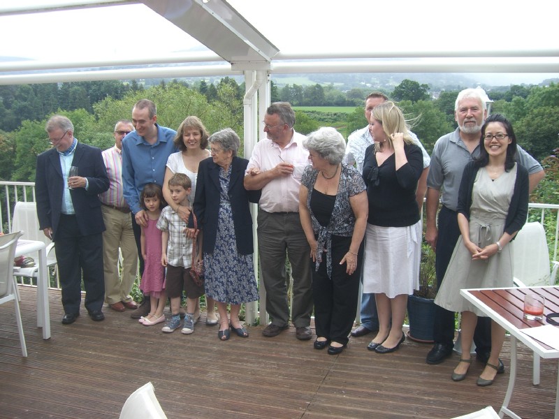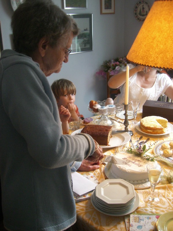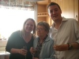 | 15:52:14 Chie, as always, rather delighted to see Yates. | 16:32:11 Back at the house, a final toast to Vera with some champagne, here's me, Vera and my cousin Beck. | 16:36:59 ...and as if we hadn't eaten enough... here's cake! |