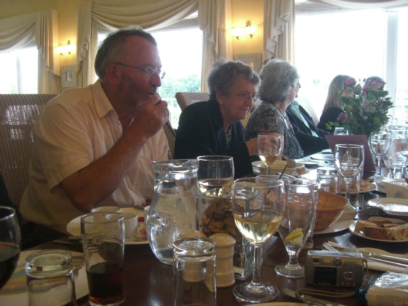 | 13:33:47 Having pre dinner drinks and looking at menus out on this deck by the side of the restaurant. | 13:47:15 A few attemptes to get a nice group shot... | 13:47:30 ....although Daniel is obviously not keen on being in the frame! |