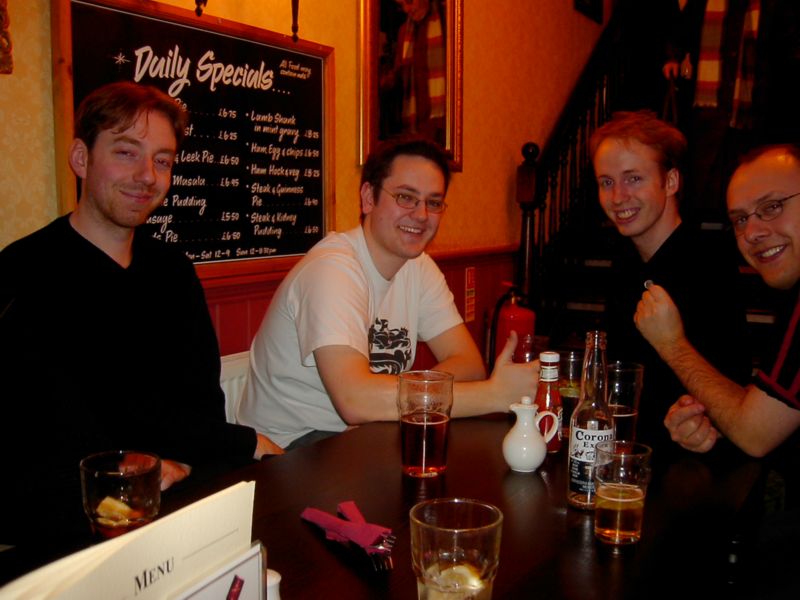 15:24:57 A whole table full of people here. If only we'd had a bit of chalk, we could have written "Lampdeath" and "Catpiss" on this blackboard here. Oh the glory of hindsight... and chalk. |