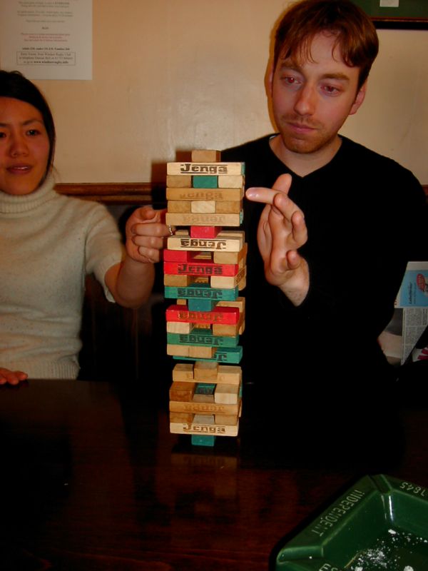 15:27:41 I'm sure there's a running theme in the characters of today's pubs, albeit a tenuous one. Perhaps it's gravity - cat piss, lamp death and Jenga all rely heavily on gravity. Errrr, anyway, this was the pub where we played Jenga. |