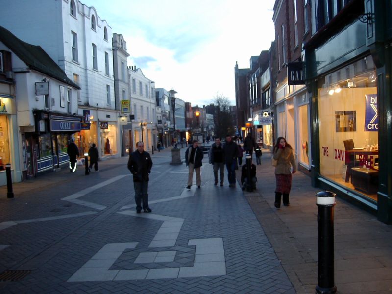 18:02:46 Ahhh.... just when I was thinking we'd never leave The Criterion, or whatever it was called... Clearly we had left by this point, as here are some of the attendees walking up the very bland pedestrianised bit in Windsor. It's called Peascod Street or something like that. |