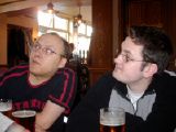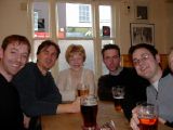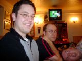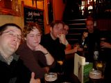 13:58:03 At the second pub now, The Two Brewers. No smell of cat piss here, which personally I found a little disappointing. On the trial run the previous week, this was mine and Kev's favourite pub, but it perhaps wasn't as well suited to a large group. The lack of space on the inside forced us to sit outside, and although it looks nice and sunny it was actually very windy and therefore bloody cold. |