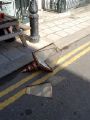 14:05:17 The fallen lamp next to the post it came off. Being the kind hearted responsible citizens we are, we moved it out of the road a bit, to stop any small children accidentally eating it. |