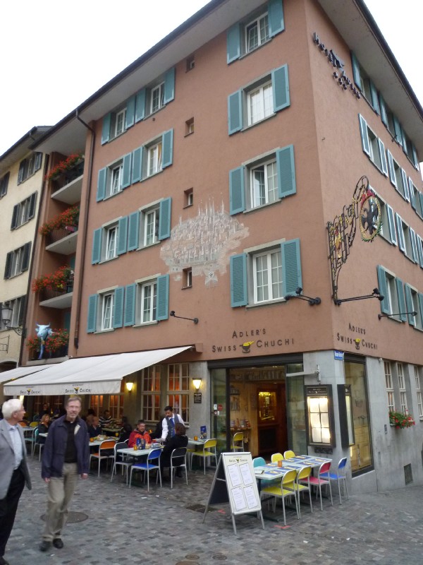 | 17:10:48 Nice to be able to see the mountains in the distance. | 17:18:40 Zurich Gnome Centre. | 17:54:27 An early dinner - fondue! |