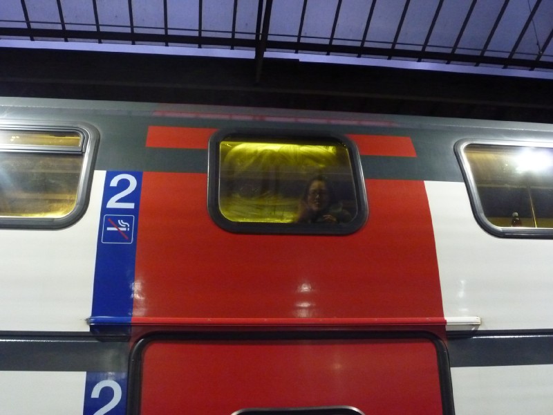 | 18:53:57 The place where we bought some macaron as a dessert. | 19:06:04 Chie on the train back to the airport, taken whilst waving her off from the platform. |